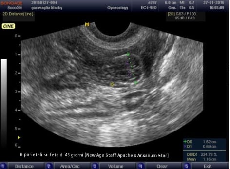 - Al 40° giorno dall'accoppiamento effettuiamo il secondo controllo ecografico per verificare la salute dei feti, il flusso cardiaco e le biometrie per stabilire la data del parto con una precisione di +1/-1 giorno;