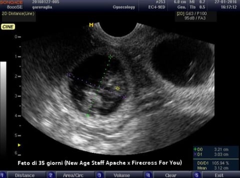 - Al 21° giorno dall'accoppiamento effettuiamo la prima ecografia per verificare la gravidanza in corso e la corretta maturazione degli impianti nei quali, successivamente, sarà ben visibile il feto. Questo primo controllo ecografico è molto utile per stabilire che non ci sia un riassorbimento fetale in corso;