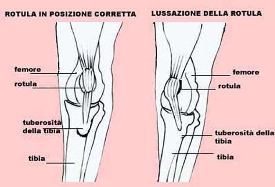 La lussazione rotulea avviene quando questo osso si muove al di fuori del solco della parte distale del femore; il mal posizionamento della rotula può avvenire in senso mediale(all’interno del ginocchio) olaterale (all’esterno del ginocchio).