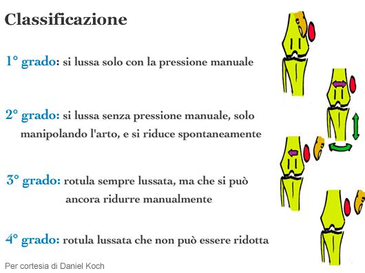Il livello di gravità della lussazione rotulea viene suddiviso in: